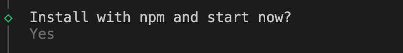 마지막에 "Install with npm and start now?" 문구가 나오고 "Yes" 선택하면 자동으로 패키지들이 설치된다
